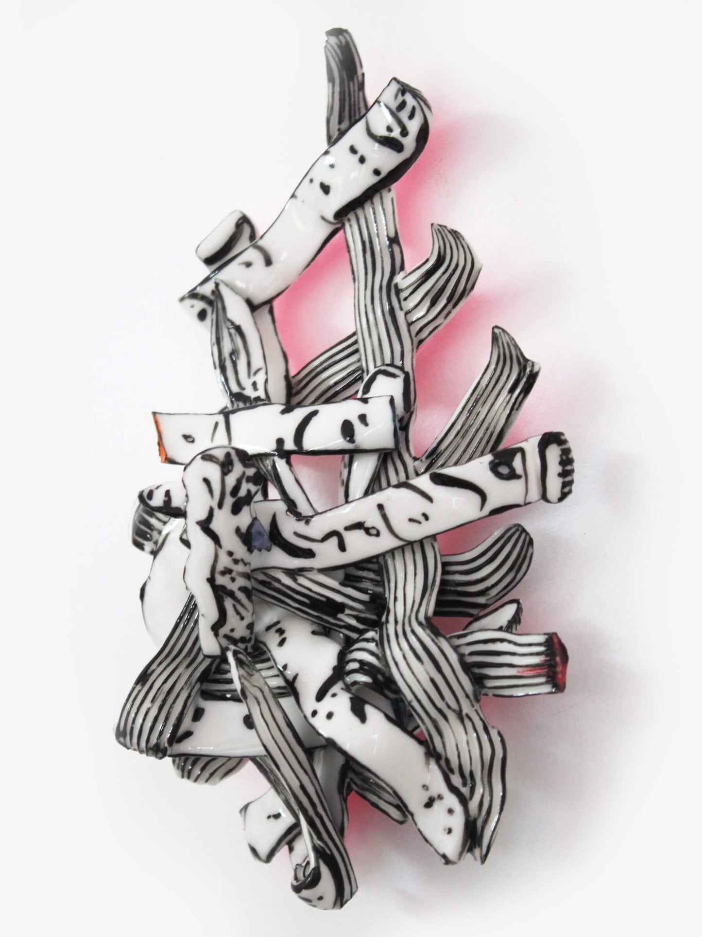 Glazed pocelain and acrylic, 190 x 100 x 60mm. Has a hanging fixture on the back and can be wall hung.