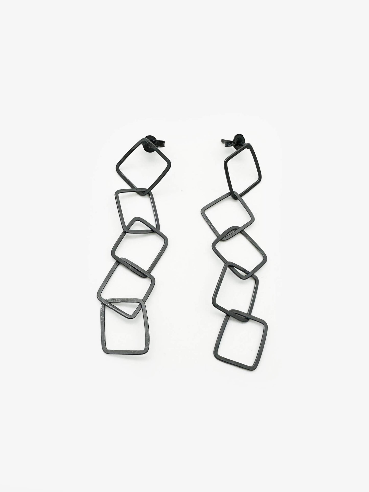 Sketches Square Oxidised Silver 5 Link Earrings (IME57)