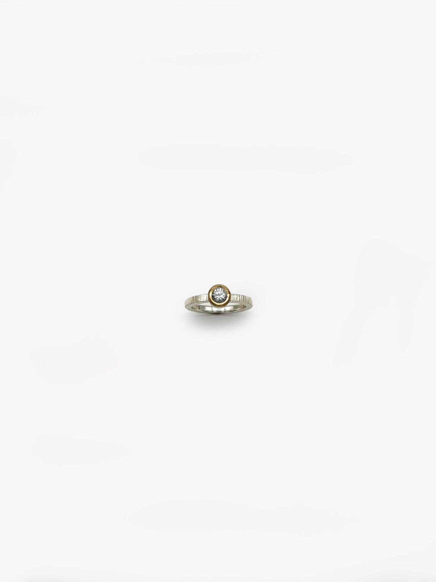 Ring by John Z Robinson. White Sapphire, Stirling Silver and 18ct Gold Ring. Size P 1/2