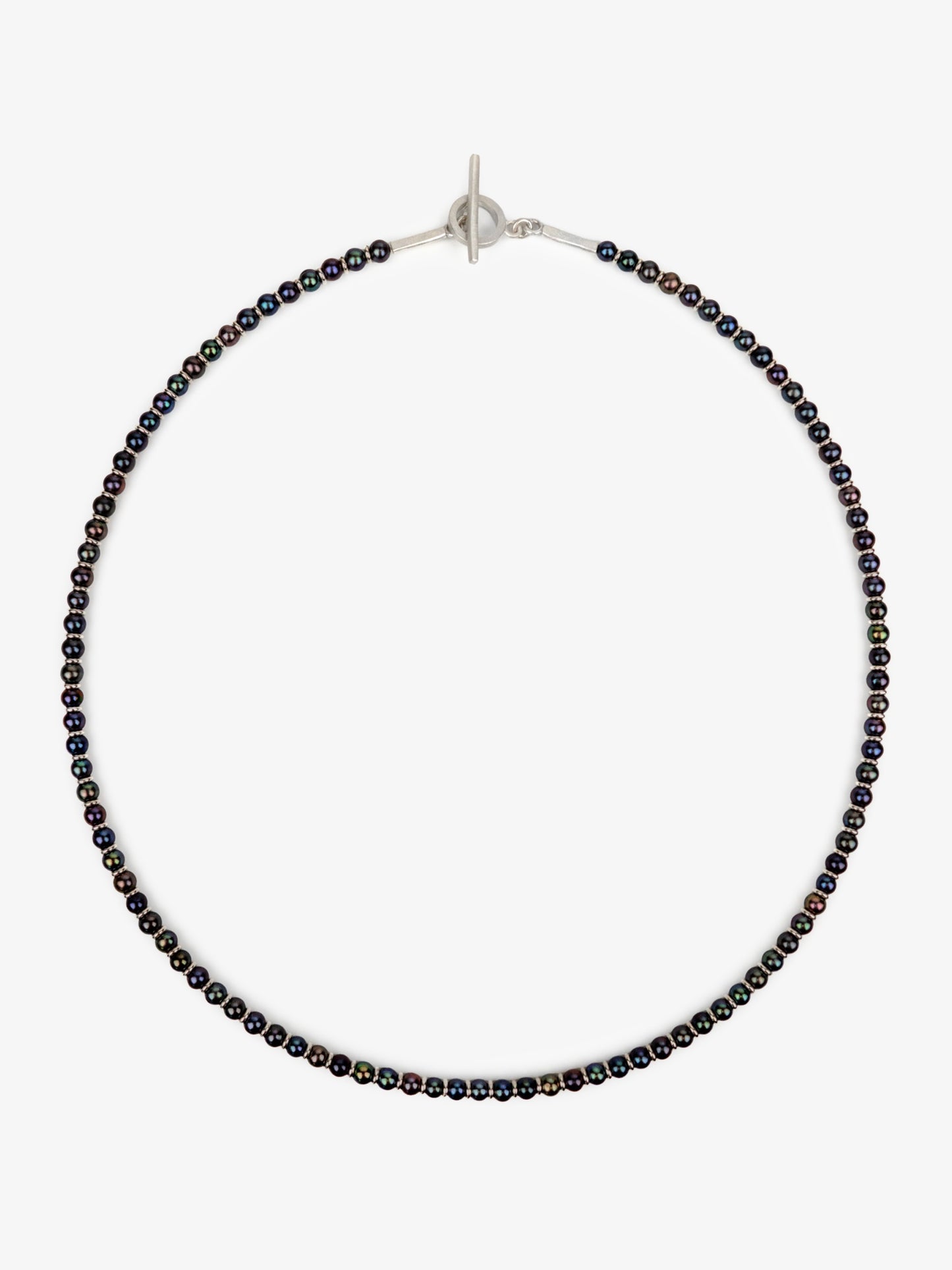 Contrast Necklace by Kate Alterio, made with sterling silver and black pearls