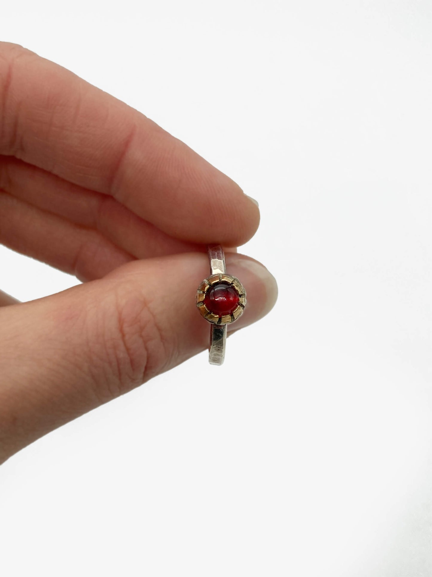 Ring by Penelope Barnhill. Made with silver, African garnet and 22ct gold. Size O.