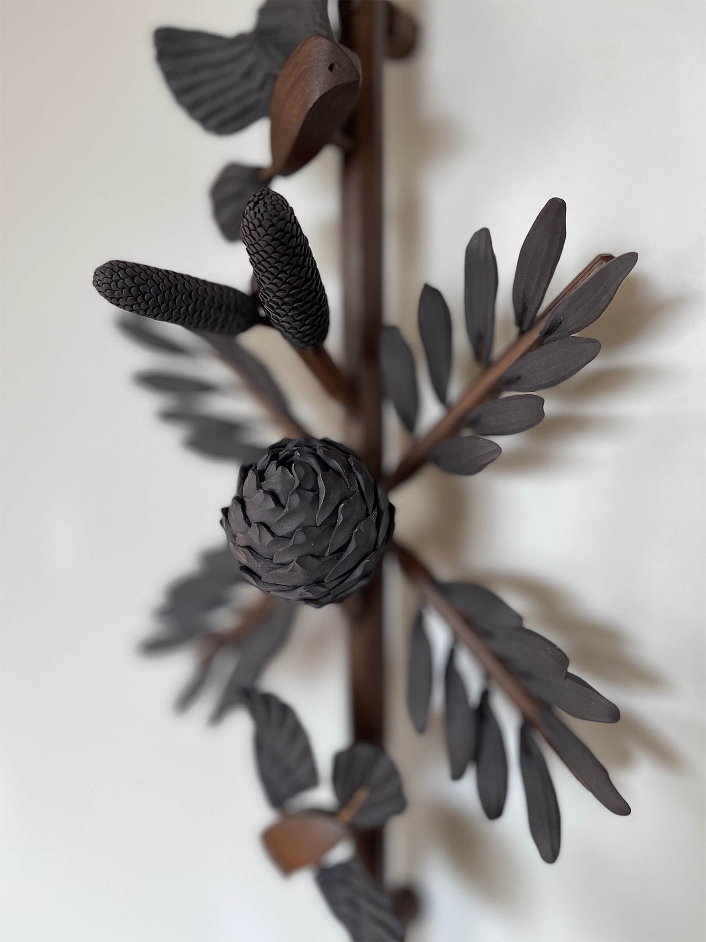 Ceramic and wood, 680 x 270 x 160mm. All wood used is reclaimed oak with a wax finish. Ceramic is black stoneware, unglazed.