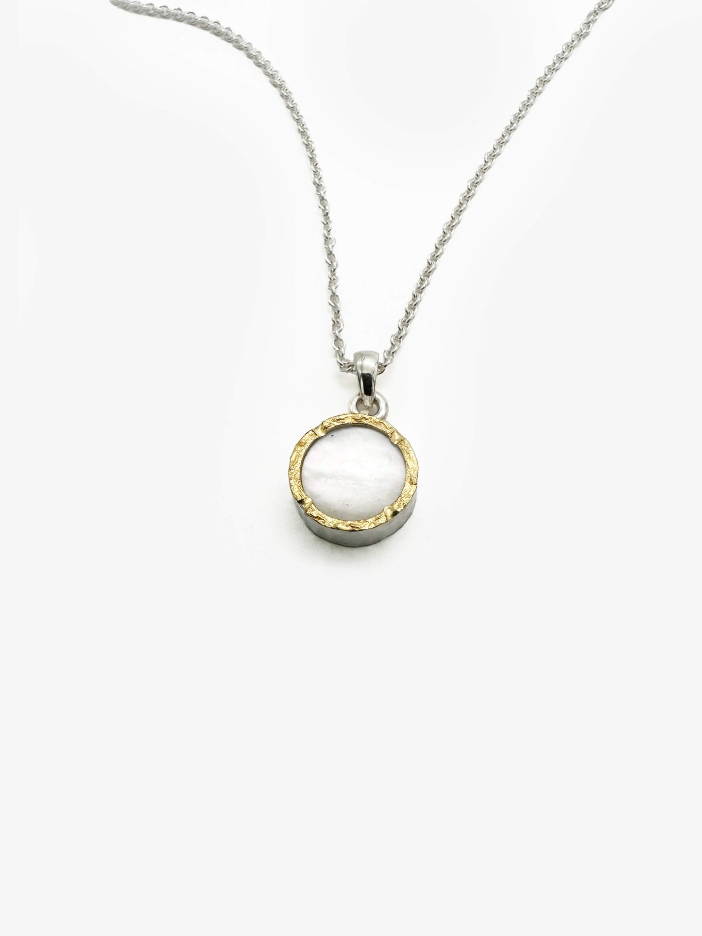 Sterling silver, 22ct gold, mother of pearl, 45cm chain
